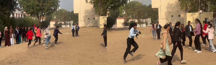 लाडनूँ, 19 दिसम्बर 2024। खेल मंत्रालय भारत सरकार तथा विश्वविद्यालय अनुदान आयोग नई दिल्ली द्वारा प्राप्त निर्देशानुसार जैन विश्व भारती संस्थान में चल रहे फिट इंडिया सप्ताह 2024 के चैथे दिन स्थानीय खेलों में रुचि जागृत करने के लिए कार्यक्रम आयोजित किया गया। इस कार्यक्रम में लंगडी-दौड़ खेल का आयोजन किया गया, जिसमें संस्थान की छात्राओं ने भाग लिया और परंपरागत एवं स्थानीय खेलो के प्रति रुचि दिखाई । कार्यक्रम का मुख्य उद्देश्य विद्यार्थियों में स्थानीय खेलों के प्रति रुचि जागृत करना एवं उन्हें नियमित रूप से ऐसे खेल खेलने के प्रति प्रेरित करना रहा। इस अवसर पर कार्यक्रम अधिकारी डॉ. बलबीर सिंह, खेल प्रशिक्षक दशरथ सिंह तथा अभिषेक चारण सहित अनेक विद्यार्थी उपस्थित रहे।