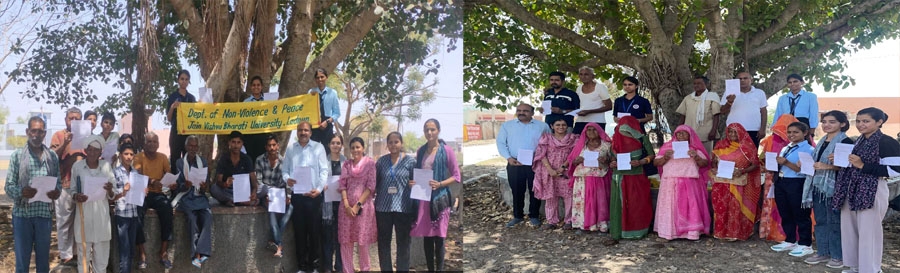 लाडनूँ,15 अप्रेल 2025। जैन विश्वभारती संस्थान के शिक्षा विभाग एवं अहिंसा एवं शांति विभाग के संयुक्त तत्वावधान में असोटा गांव में कार्यात्मक साक्षरता एवं वयस्क बुनियादी शिक्षा (एबीई) विषयक एक विशेष कार्यक्रम का आयोजन किया गया। इस कार्यक्रम का उद्देश्य ग्रामीण समुदाय, विशेषतः अशिक्षित वयस्कों को बुनियादी पढ़ना-लिखना सिखाना, रोजमर्रा के जीवन में आवश्यक गणना, स्वच्छता, बैंकिंग एवं स्वास्थ्य जैसी जानकारी से जोड़ना रहा।